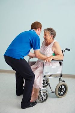 Ergonomic injuries can occur when lifting patients from a wheelchair.