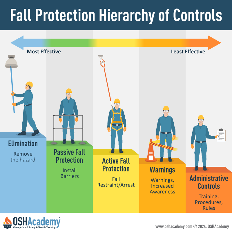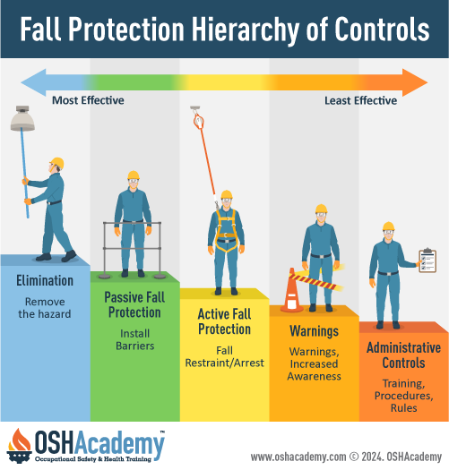 It's important to understand that all fall hazards can be eliminated, prevented, or controlled, especially when a combination of methods are used.