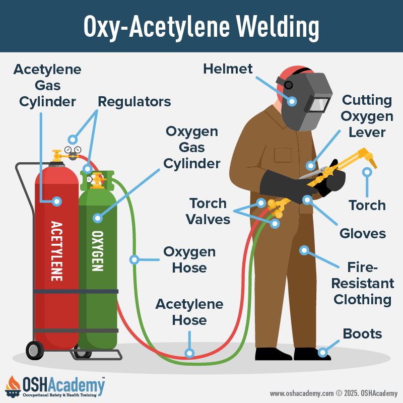 - Oxygen and acetylene cylinders must be handled with care due to the high pressure and flammability of acetylene.