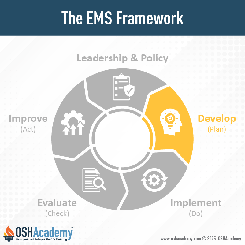 Modules 2 and 3 will cover the first 12 planning steps in the Environmental Protection Agency (EPA) EMS development framework process we discussed in the previous module. These steps align with the Continuous Improvement Plan-Do-Check-Act (PDCA) Plan Phase.