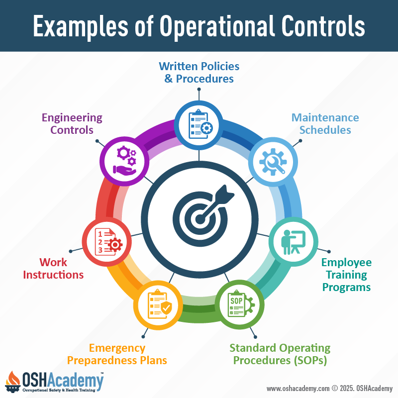 For aspects that need to be controlled, review whether existing physical controls, engineering controls, and administrative controls are sufficient. If they are not, develop an operational control. Here are a couple of examples: