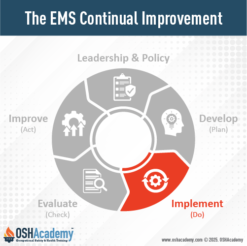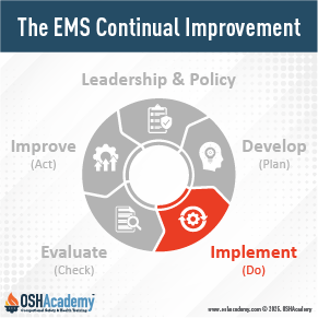 The first activity includes defining a management structure and associated roles and responsibilities for the EMS. The groundwork for this activity was laid during the planning phase, when environmental management programs are designed to achieve objectives and targets.