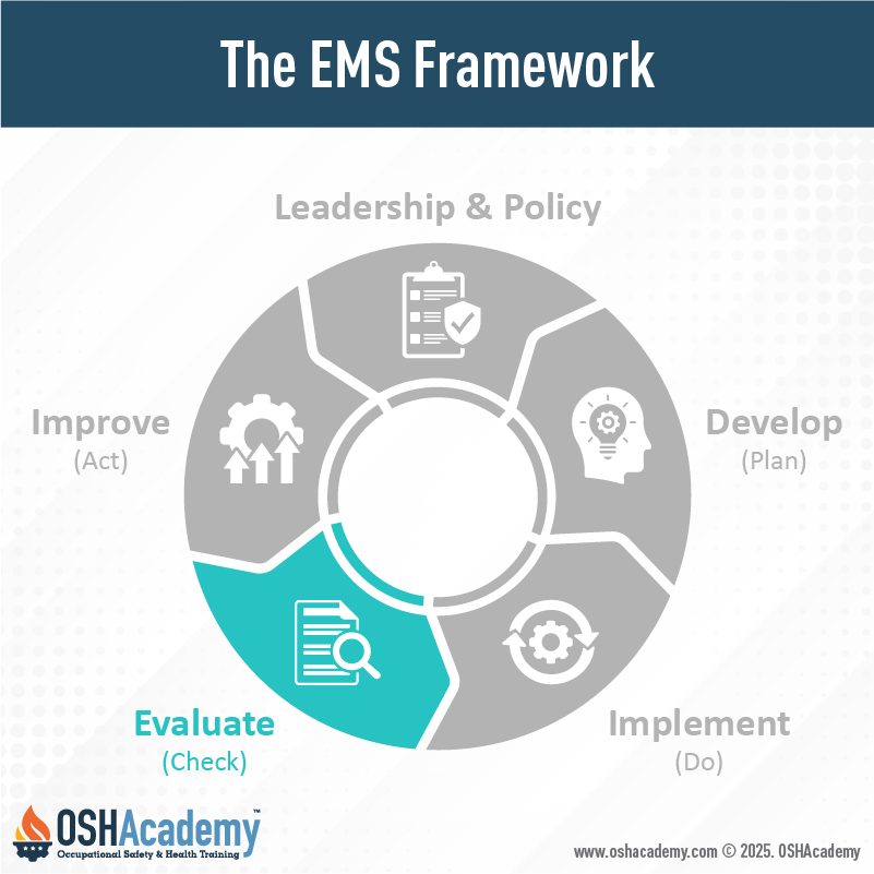 During this step, organizations evaluate process and outcome "environmental indicators," which are measurable metrics that provide information on the status of operations.