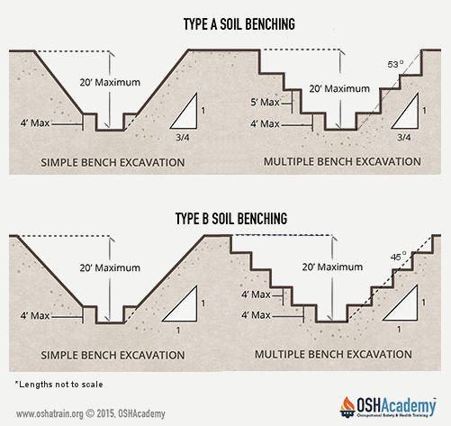 Below are benching requirements for Type A, B, and C soils.