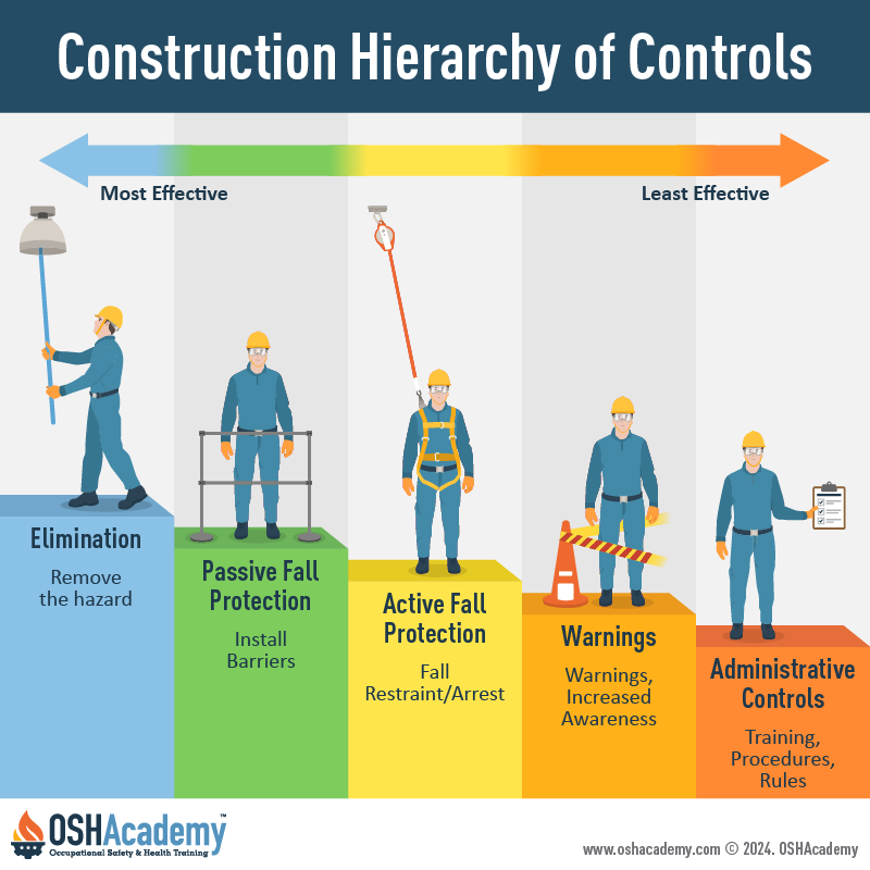 It's important to understand that all fall hazards can be eliminated, prevented, or controlled, especially when a combination of methods are used.
