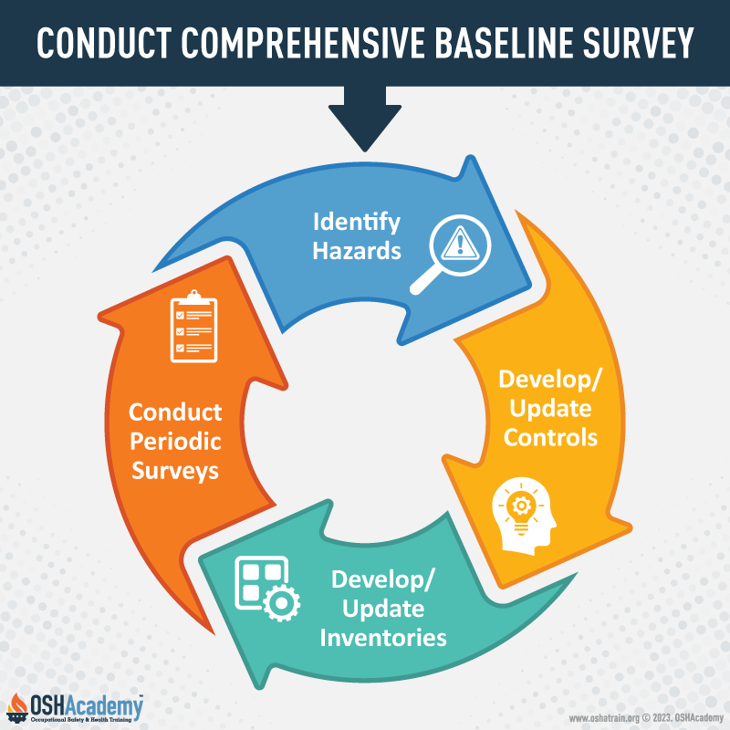 It establishes initial levels of exposure (baselines) for comparison to future levels uncovered in follow-up surveys and analyses, so that changes can be recognized. Basically, the baseline survey tells the employer what the starting point is.